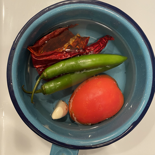 Start with making your salsa. Throw your tomato, serrano chiles, deveined chile seco (I used California here) and garlic into a small pot. Cover with water and bring to a boil until the serranos turn from a vibrant green to a green-brown color and you can easily pierce your tomato with a fork. Once cooked, add your ingredients into a blender with about 1/2 cup of the water the ingredients were cooked in, salt, a pinch of oregano and blend away until your salsa is smooth.